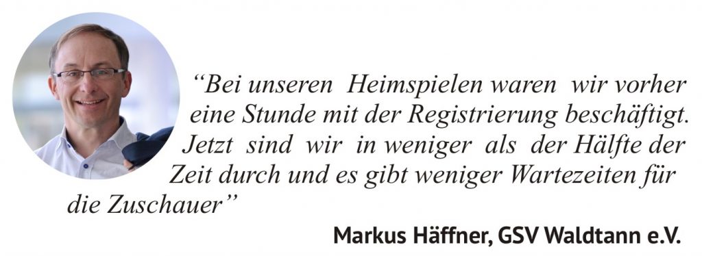 Es soll ein einfach zu bedienendes System sein welches die Vereine bei der Erfassung der Adressen der Zuschauer unterstützt und gleichzeitig in dieser schweren Zeit für die Vereine keine großen Kosten verursacht. Beides ist uns sehr gut gelungen. Bei unserem kleinen Verein (600 Mitglieder) bei dem zu unseren Heimspielen ca. 120 Zuschauer kommen hat sich das System in den Vorbereitungsspielen mehr als bewährt. Vor allem eure Heim-Zuschauer werden es euch DANKEN wenn Sie nicht bei jedem Heimspiel einen Adresszettel ausfüllen müssen.